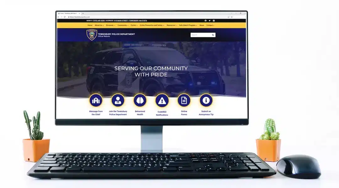 The new site, https://tewksburypolice.com/ now features a modern design with user friendly accessibility, an interactive homepage, and fresh photography of the department in action.