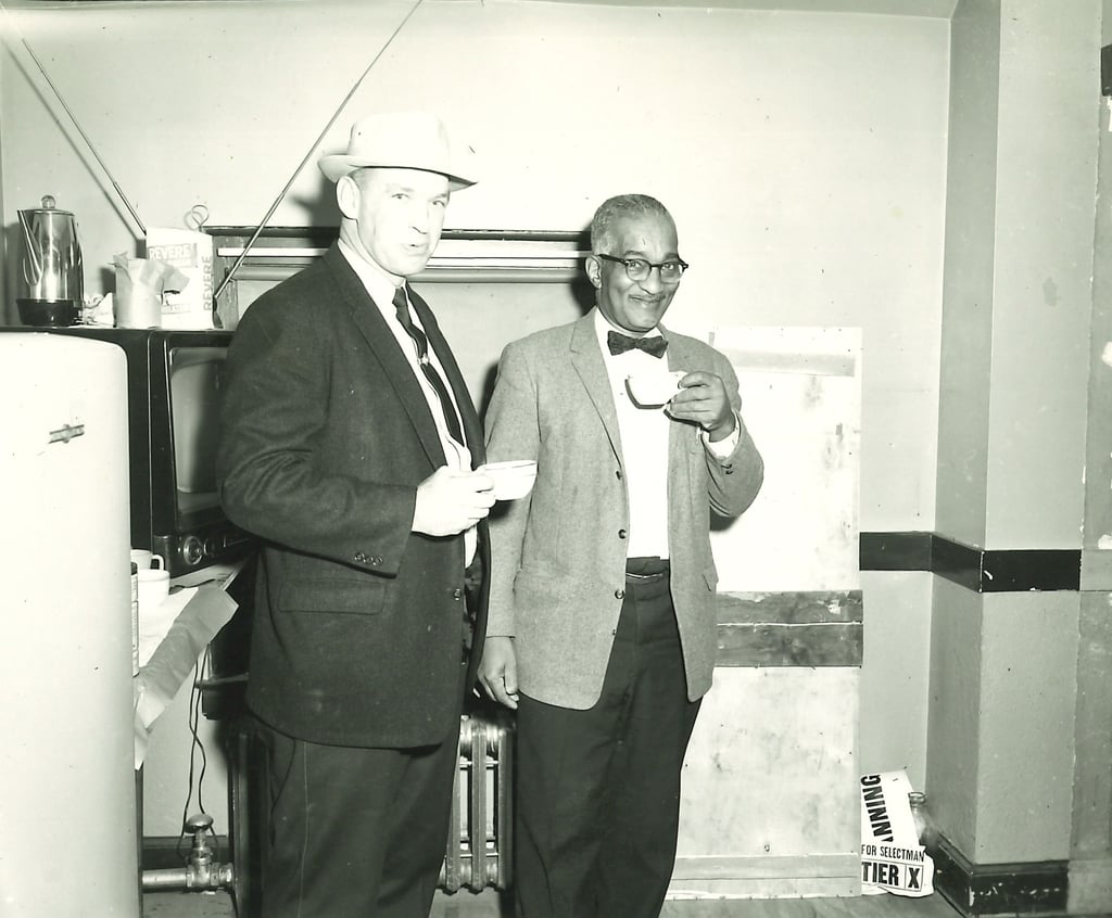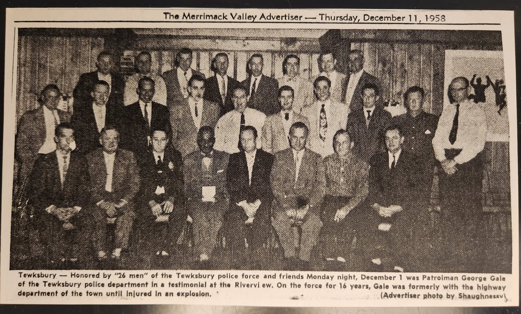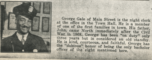 In honor of Black History Month, the Tewksbury Police Department recognizes Police Officer George Gale, who served as a Tewksbury Police Officer in the 1940s. Officer Gale is the first person of color to serve on the Tewksbury Police Department. The Gale family, (John J. Gale, Virginia “Jennie” and their 3 daughters) fled the south around 1868 for a better life. By all historical accounts, the Gale family was not only one of the first families of Tewksbury but also the first family of color to reside in Tewksbury. Based on historical documents, the Gale family were welcomed by the residents of Tewksbury and were provided housing by the Farmer family (Farmer and Dee). John Gale worked as a laborer and had 4 more children, John T. Gale, Ernest Gale, Louise Gale, and George Gale, who was born in 1894. John J. Gale ran his own company, “John Gale and Sons,” in the early 1900’s. George Gale is photographed and given a bio in a 1945 publication of the police department, which states, “George Gale of Main Street is the night clerk at the office in the Town Hall. He is a member of one of the first families in town. His father, John, came north immediately after the Civil War in 1868. George has been on duty only three years but is considered an old standby. He is kind, courteous, and faithful. George has the dubious honor of being the only bachelor officer of the eight mentioned here.” George is also mentioned in a newspaper publication about the Tewksbury Athletic Club in 1932.