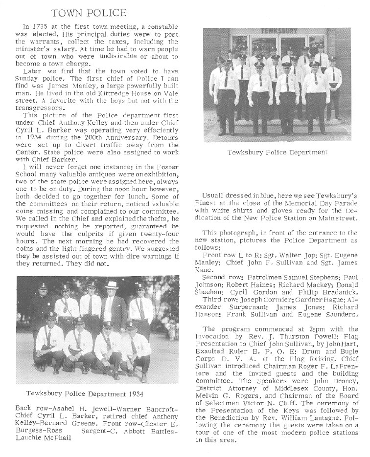 Tewksbury Police Department History Page