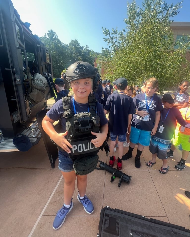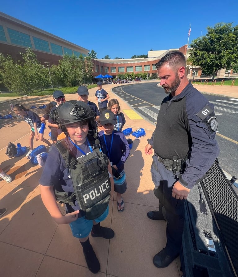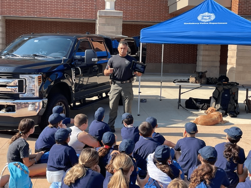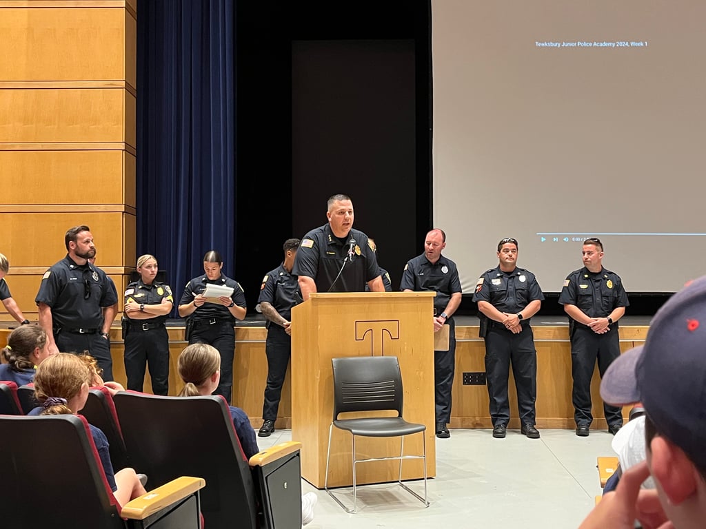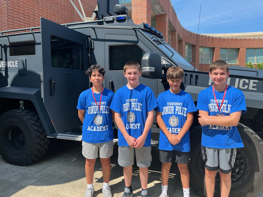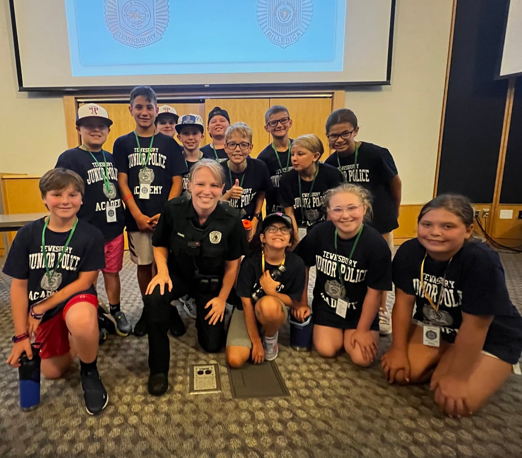 The Tewksbury Police Department holds an annual Junior Police Academy every summer. This free program is offered in two sessions, each session being five days. The program is open to incoming 5th-8th graders, and they must be Tewksbury residents.